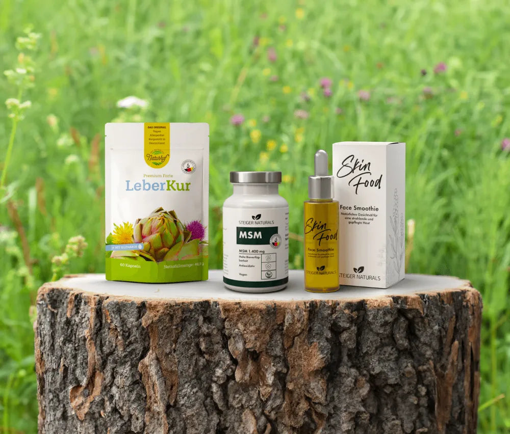 Our liver cure* combines a balanced mixture of natural extracts (black radish dry extract, milk thistle extract, artichoke extract, horsetail (field horsetail), dandelion extract), vitamins (vitamin B6, vitamin B12, vitamin B9) and minerals (silicic acid, choline).